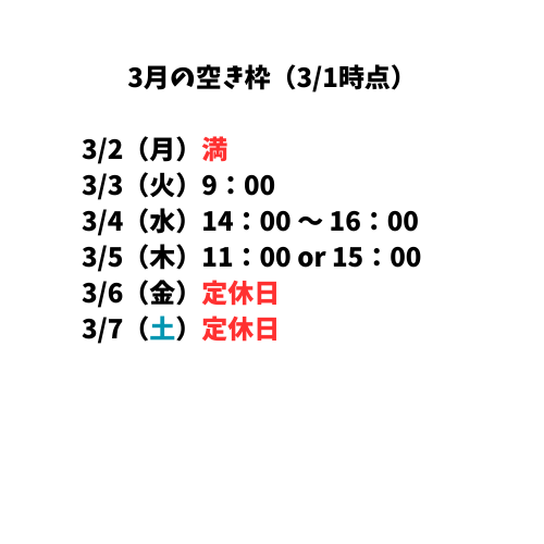 ※ 施術中は留守番電話対応となる場合があります ※ いただいた順にご案内いたします